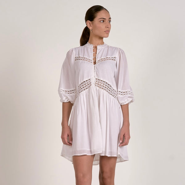 The White Willow Dress, an exquisite creation by Elan, embodies a romantic essence, enveloping the wearer in a soft, airy embrace. Adorned with delicate lace panels and fully lined for an opulent finish, this piece invites the elegance of nature into your wardrobe, evoking ethereal beauty and grace.