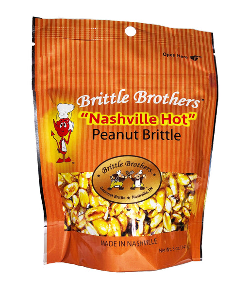 We took the most delicious Peanut Brittle on Earth and gave it a "Nashville Twist"...spicy peanut brittle. One of the finest "sweet/heat" combination snacks in America, the Brittle Brothers' took the famous "Nashville Hot Chicken" phenomenon and put their own take on it. It starts out as a sweet, savory peanut brittle, but has a little surprise for you at the end! It's not too hot...just a perfect little "Zing" to finish it off. Perfect gift for that spicy family member or friend!