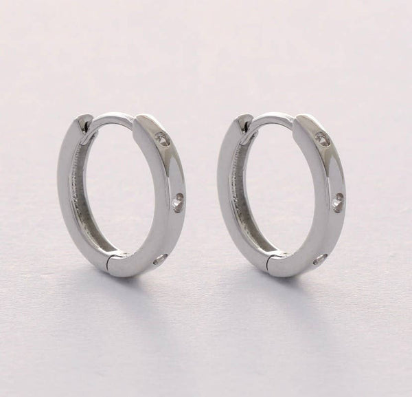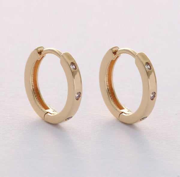 These small huggie earrings are cute and simple. They feature tiny clear crystals. Choose your color