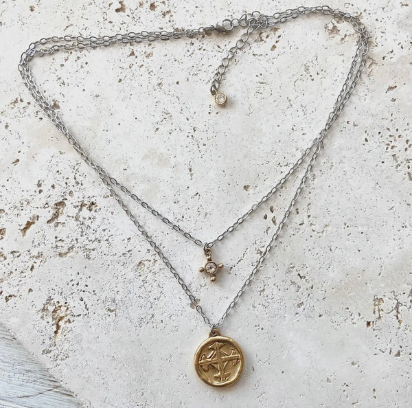 This necklace is 2 layers (one piece) and reversible! The first layer is a hand casted mini vintage cross with a sparkly Swarovski crystal.