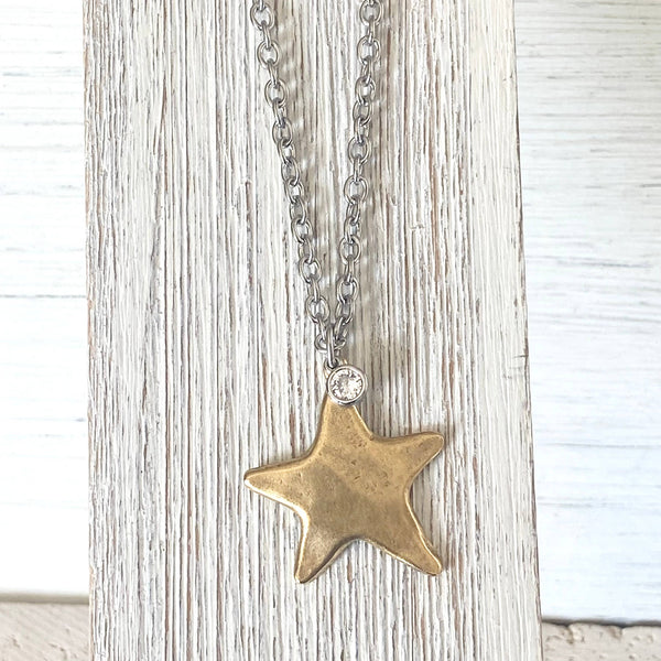 These star necklaces are fun to wear and edgy Glam. They are hand casted, and approximately 32”there is a cute dangling clear 6mm crystal charm. The chain is adjustable up to 17-20 inches. It is a non-tarnishing stainless steel. Choose your color