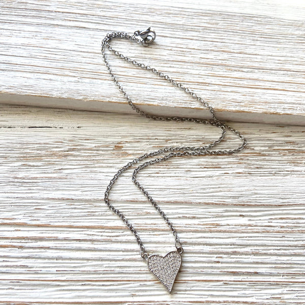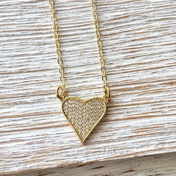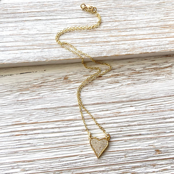 Delicate and timeless, these dainty micro-pave crystal heart necklaces add the perfect touch of elegance to any look. Crafted on a high-quality, non-tarnishing chain. The adjustable length makes it easy to layer or wear solo, ensuring a flattering fit for every neckline. Whether you're dressing up or keeping it casual, these minimal charm necklaces are a subtle yet meaningful addition to your jewelry collection. Approximately, 17.5" - 19.5" in length. Choose gold or silver.